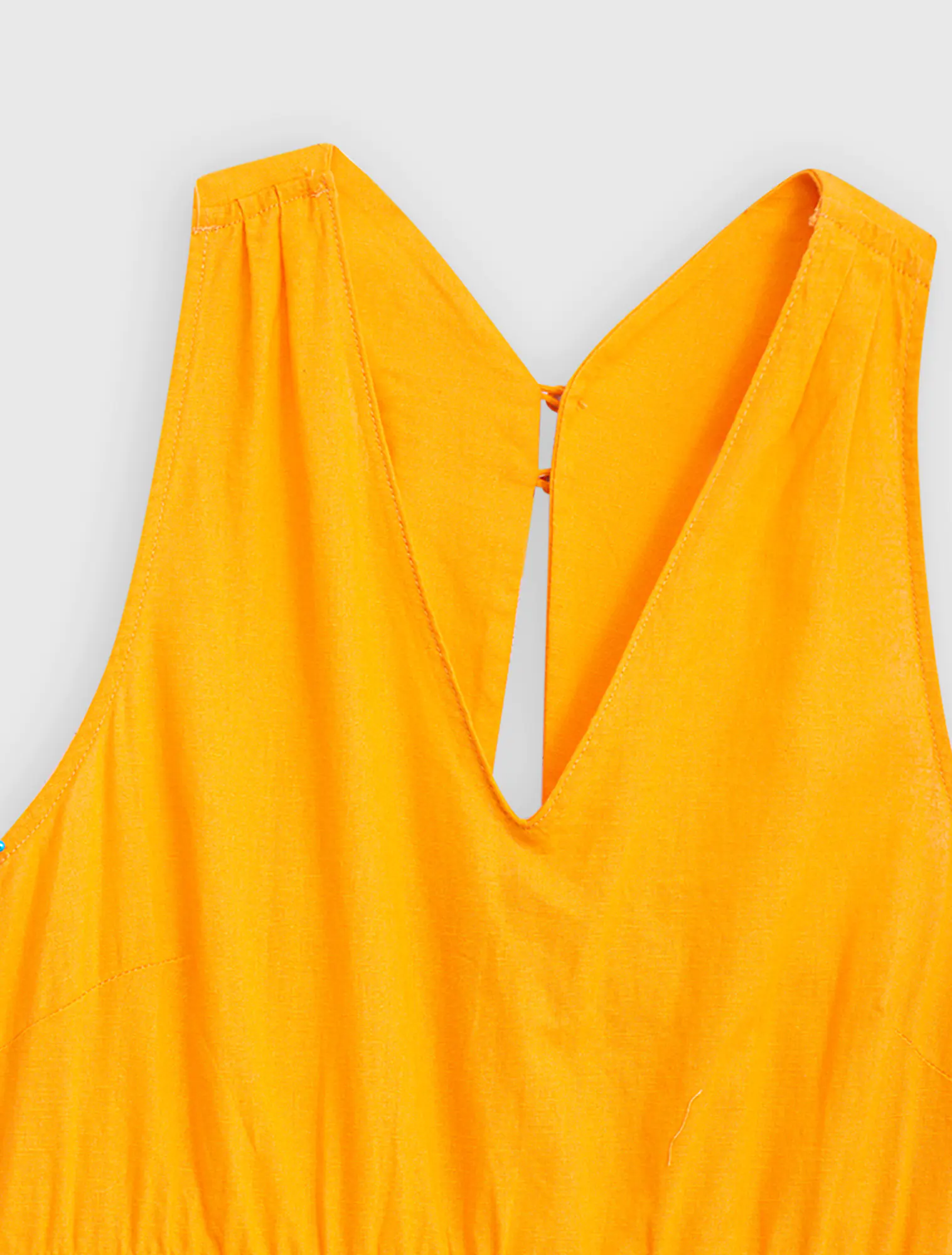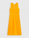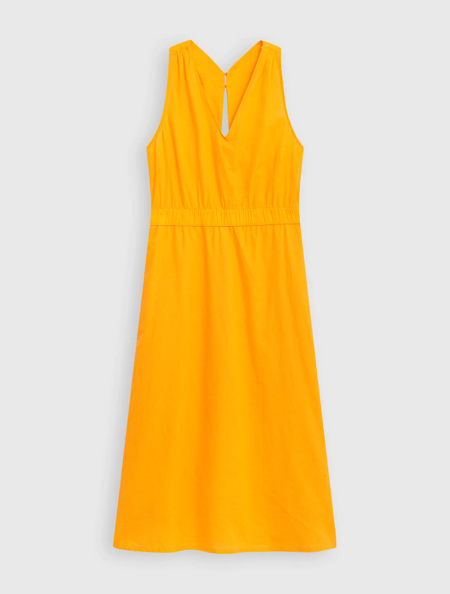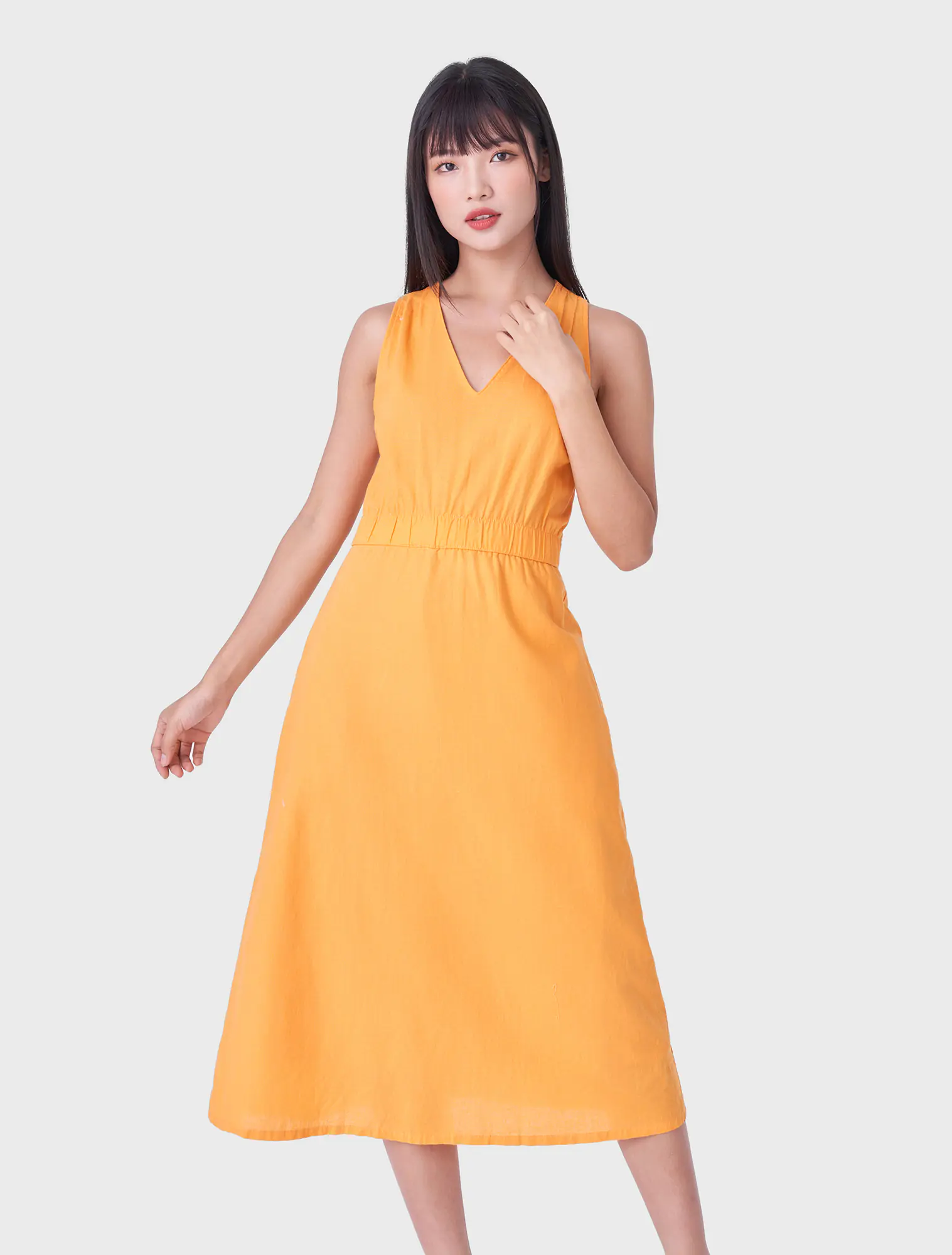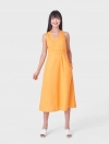 Váy liền nữ chất liệu linen pha, cổ tim sát nách, chun eo.