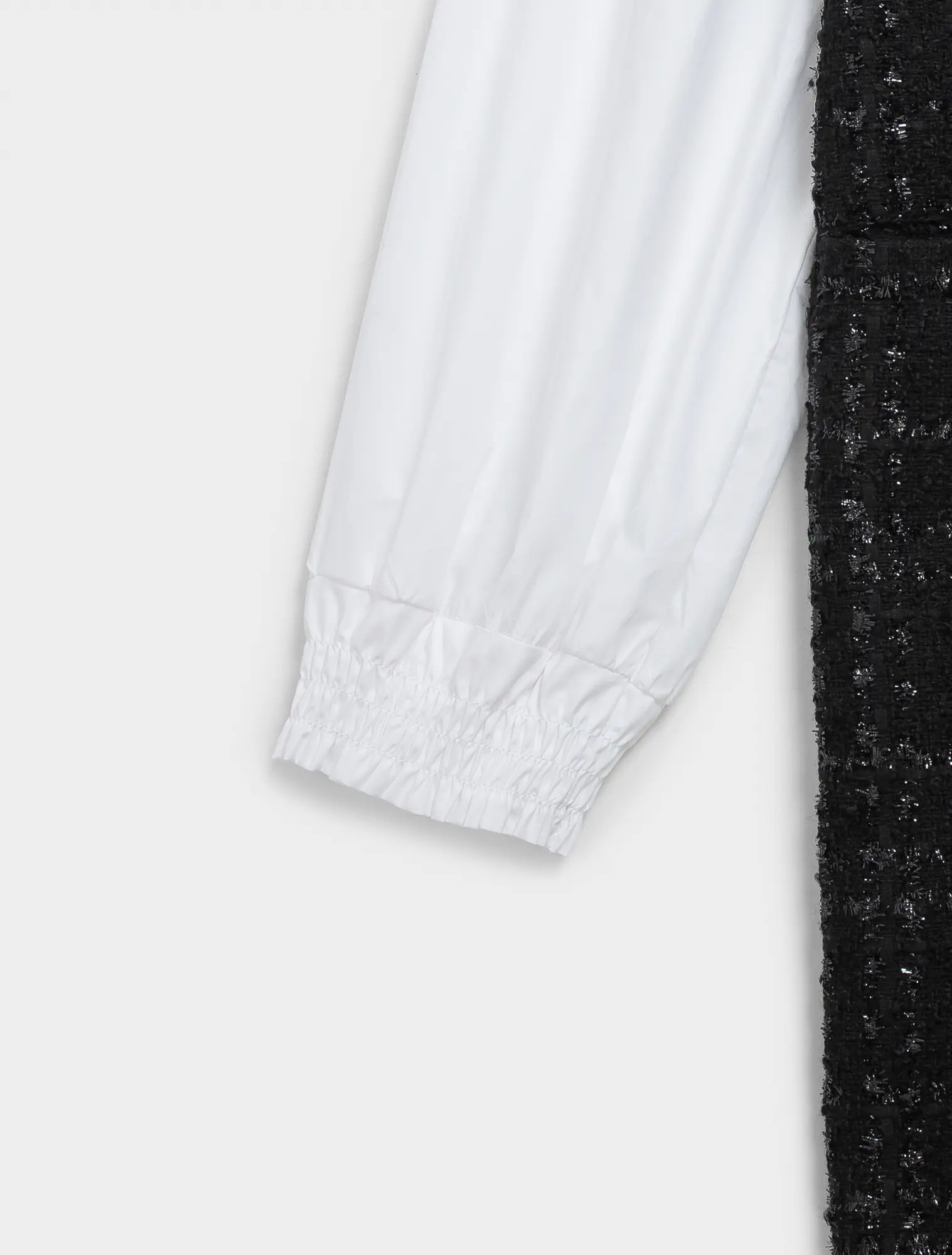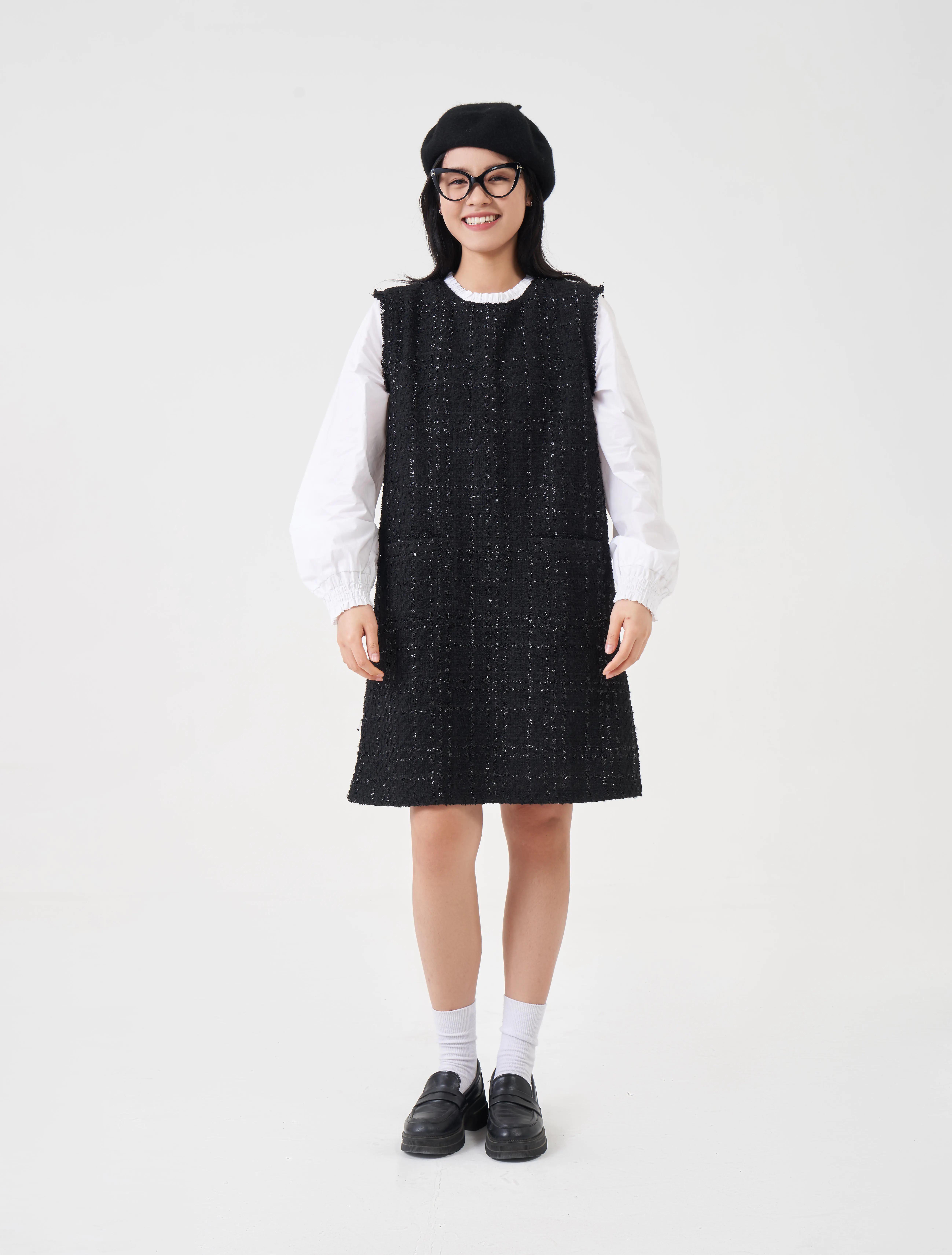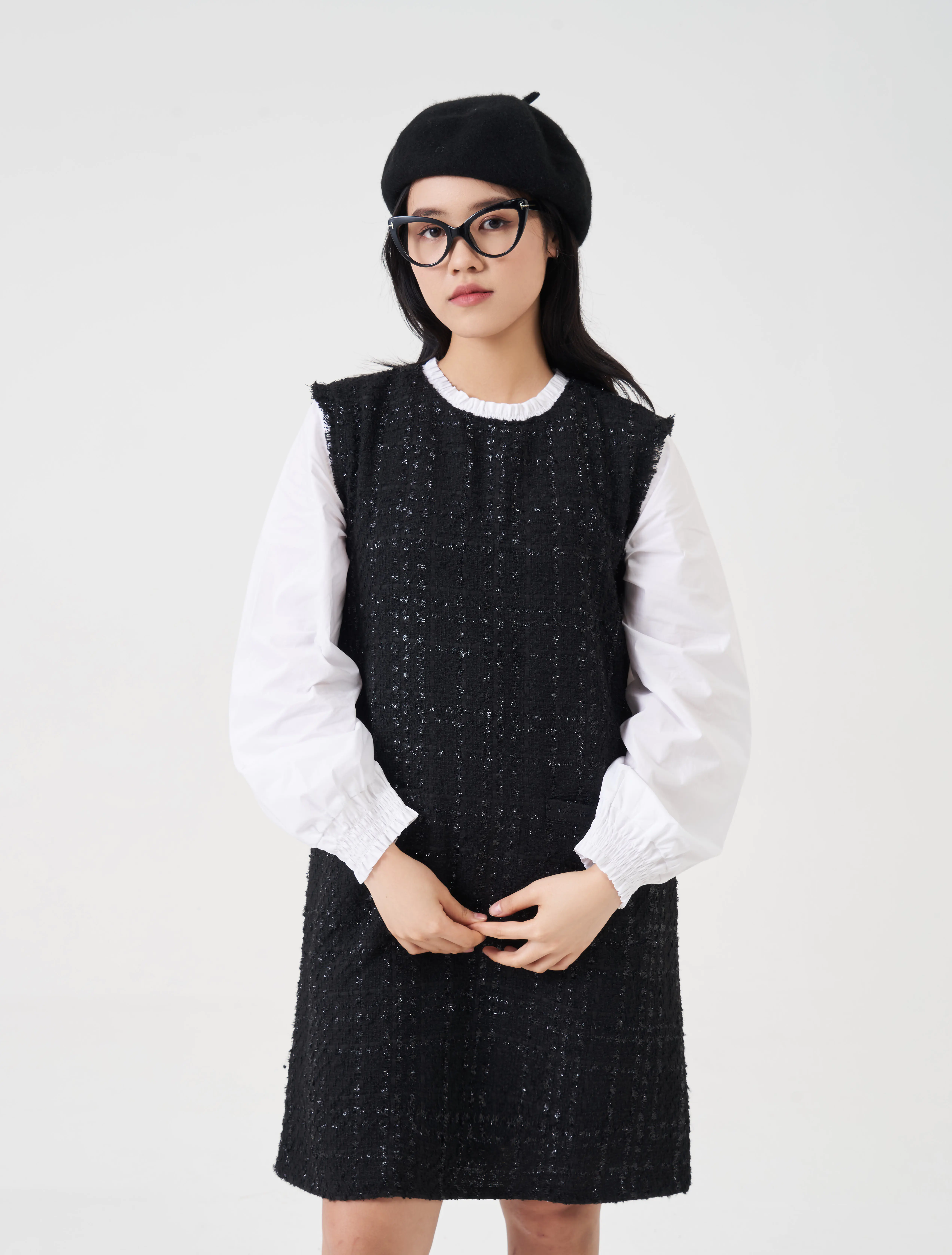 Sự kết hợp giữa chất liệu liệu dạ kiểu phần thân váy hai lớp và phần tay áo chất liệu cotton, giúp sản phầm giữ phom dáng tốt nhưng vẫn đảm bảo mềm mại và ấm áp.