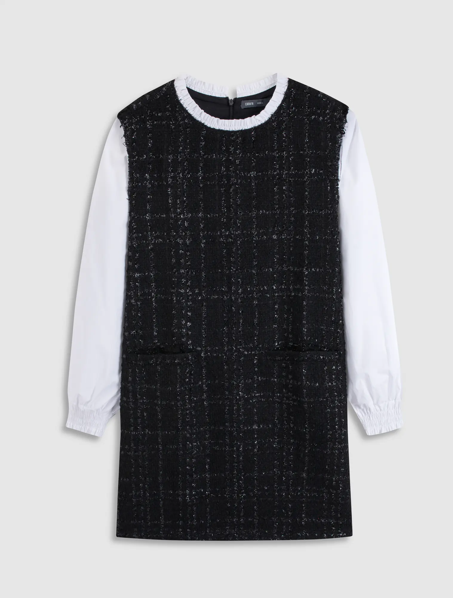 Váy liền nữ hai lớp dạ kiểu phối tay dài.