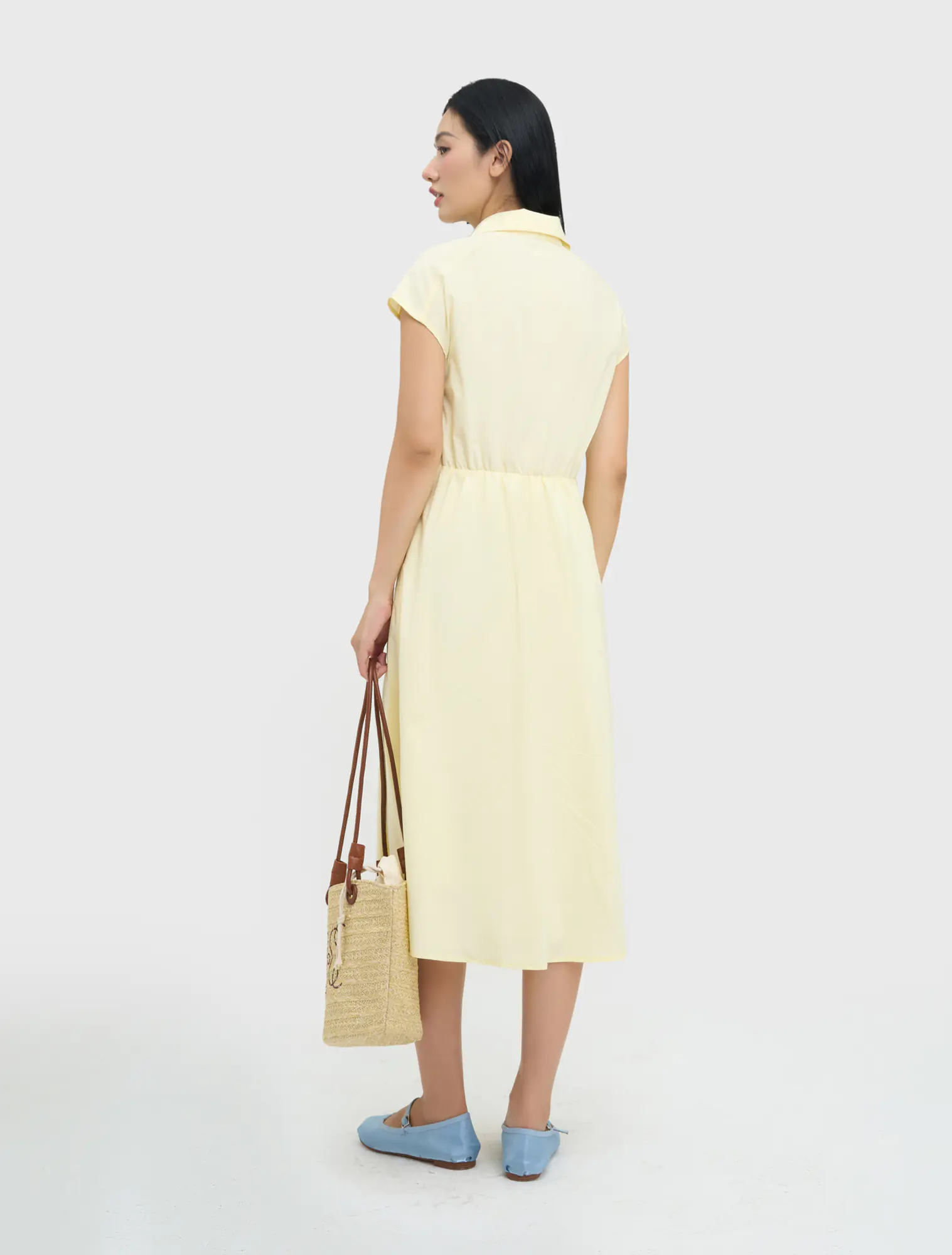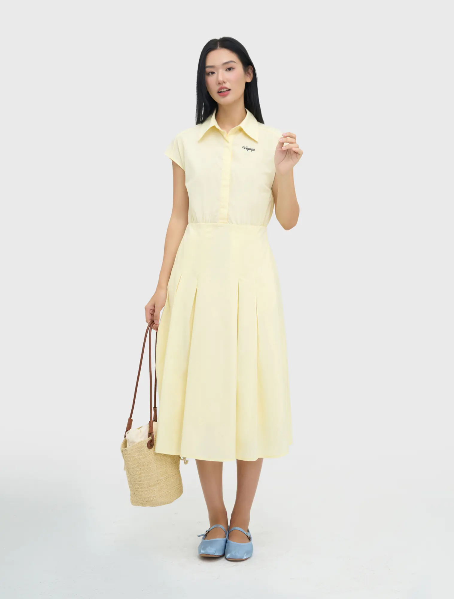 Váy liền nữ, cổ sơ mi, dáng xòe A. Chi tiết thêu một bên ngực. Kiểu dáng basic phù hợp nhiều hoàn cảnh. Áo có nền màu trơn, nền màu họa tiết mang lại nhiều lựa chọn hơn cho khách hàng.