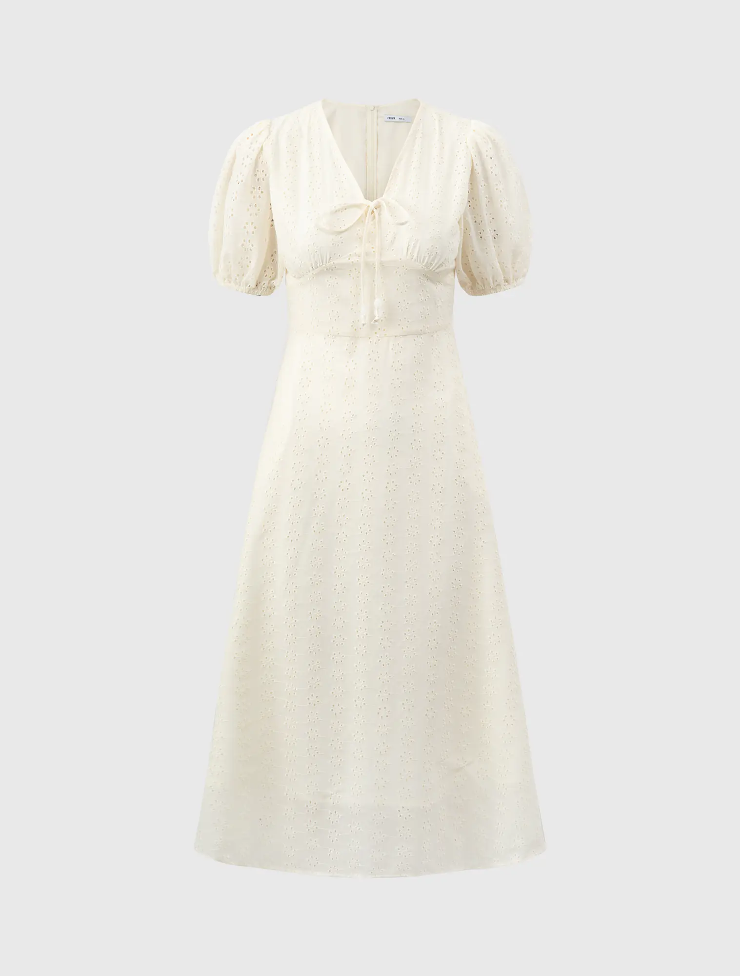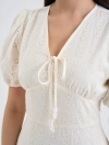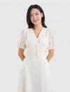 Váy liền nữ dáng dài ngắn tay, cổ kiểu. Chất liệu ren mềm mại, phù hợp đi chơi, dạo phố.