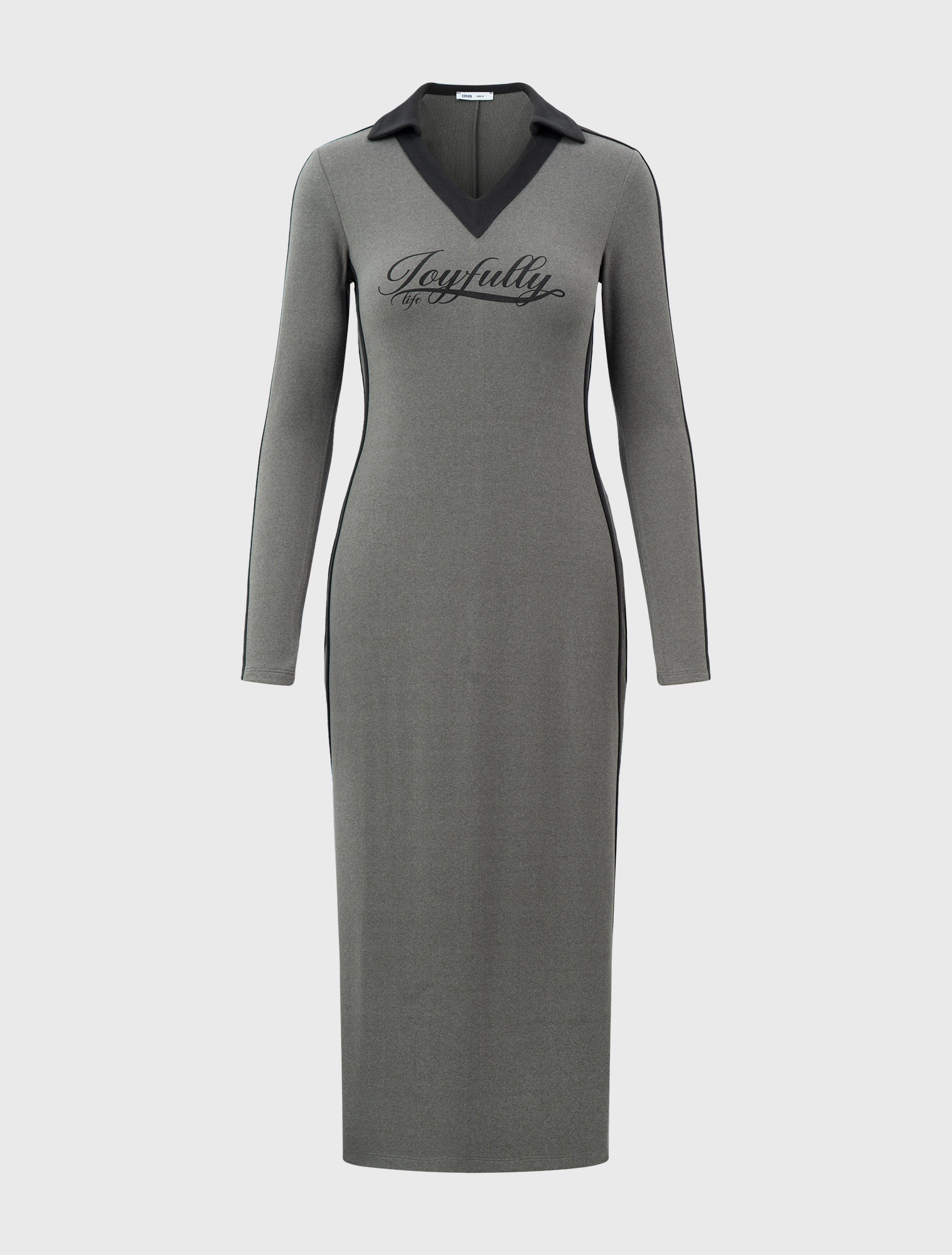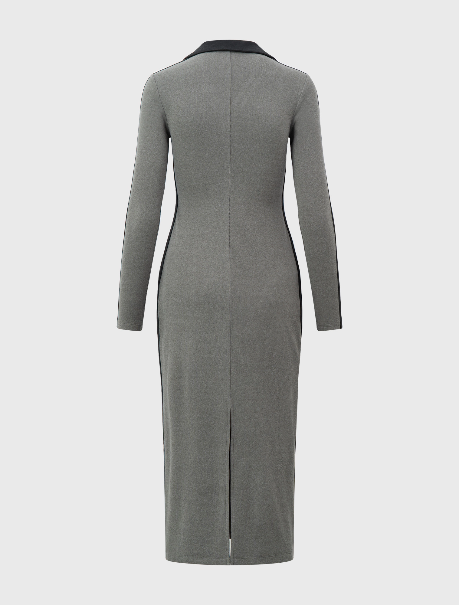 Váy liền nữ dáng ôm dài kiểu dáng thể thao với chi tiết phối màu dọc 2 bên sườn váy và cổ áo,