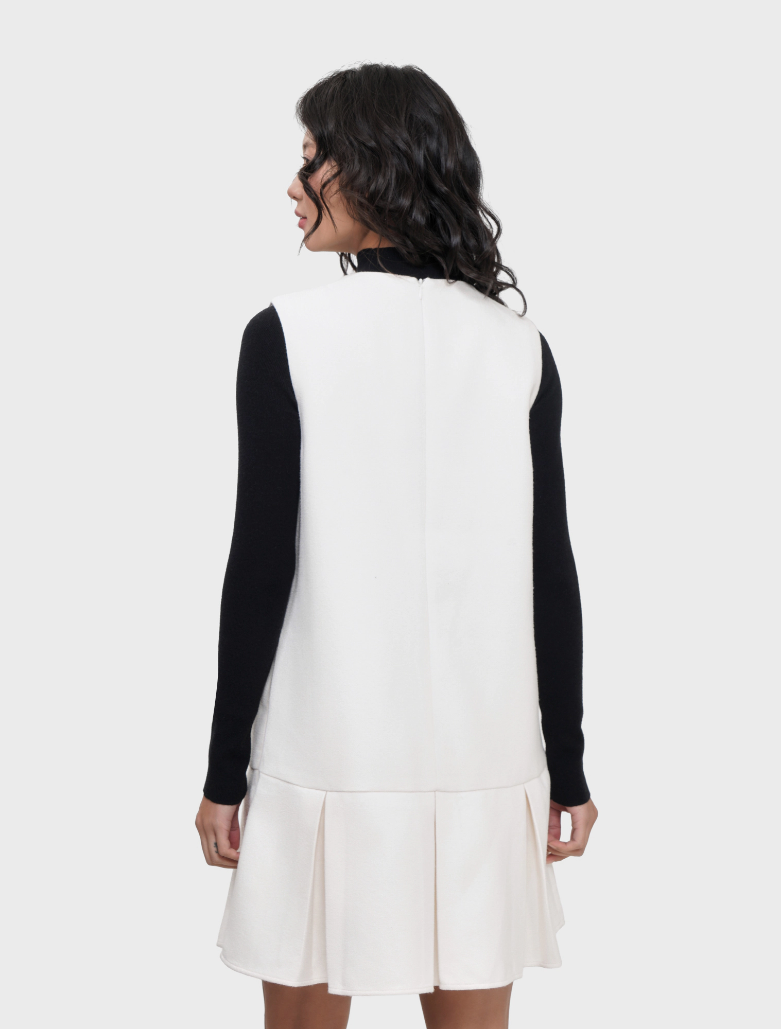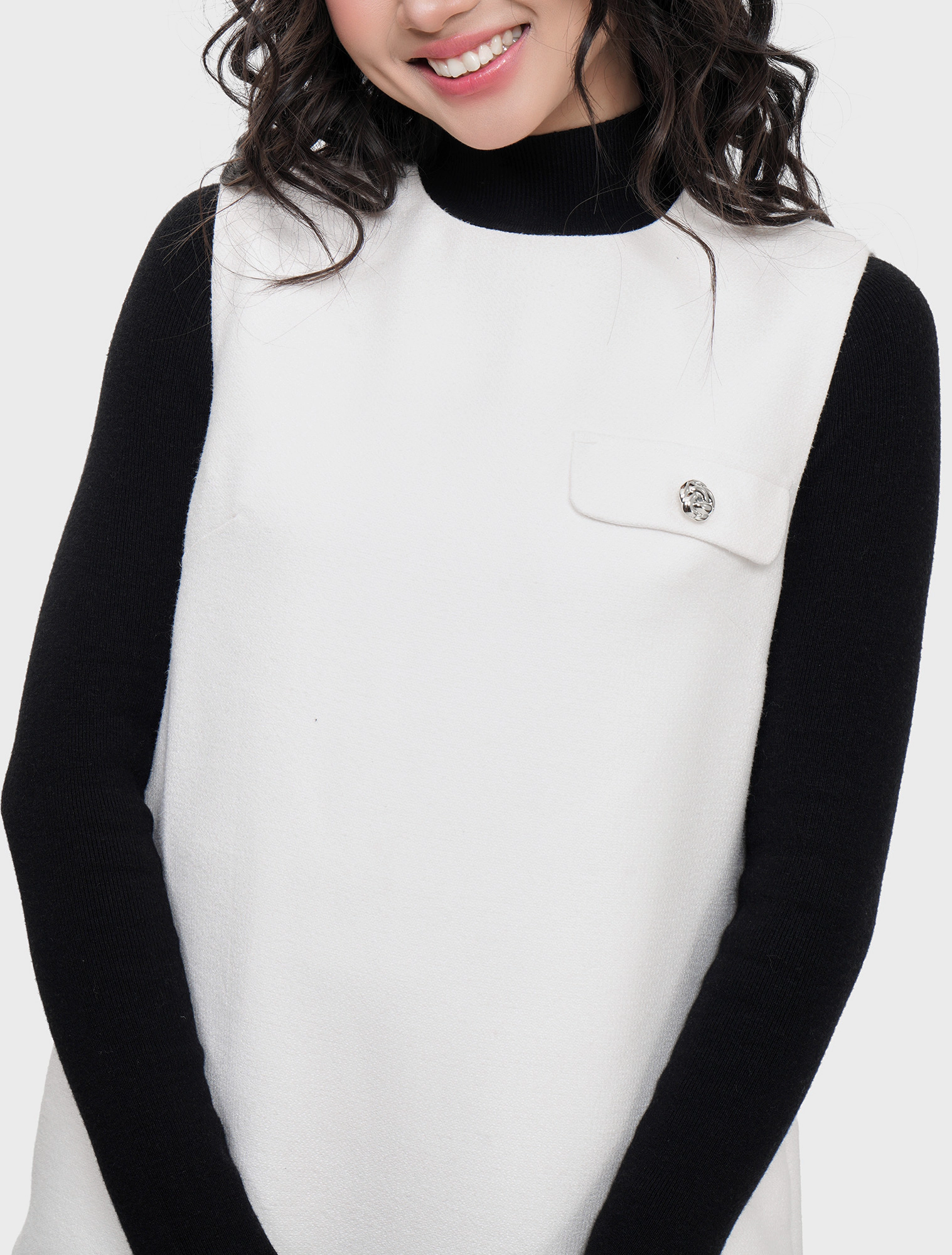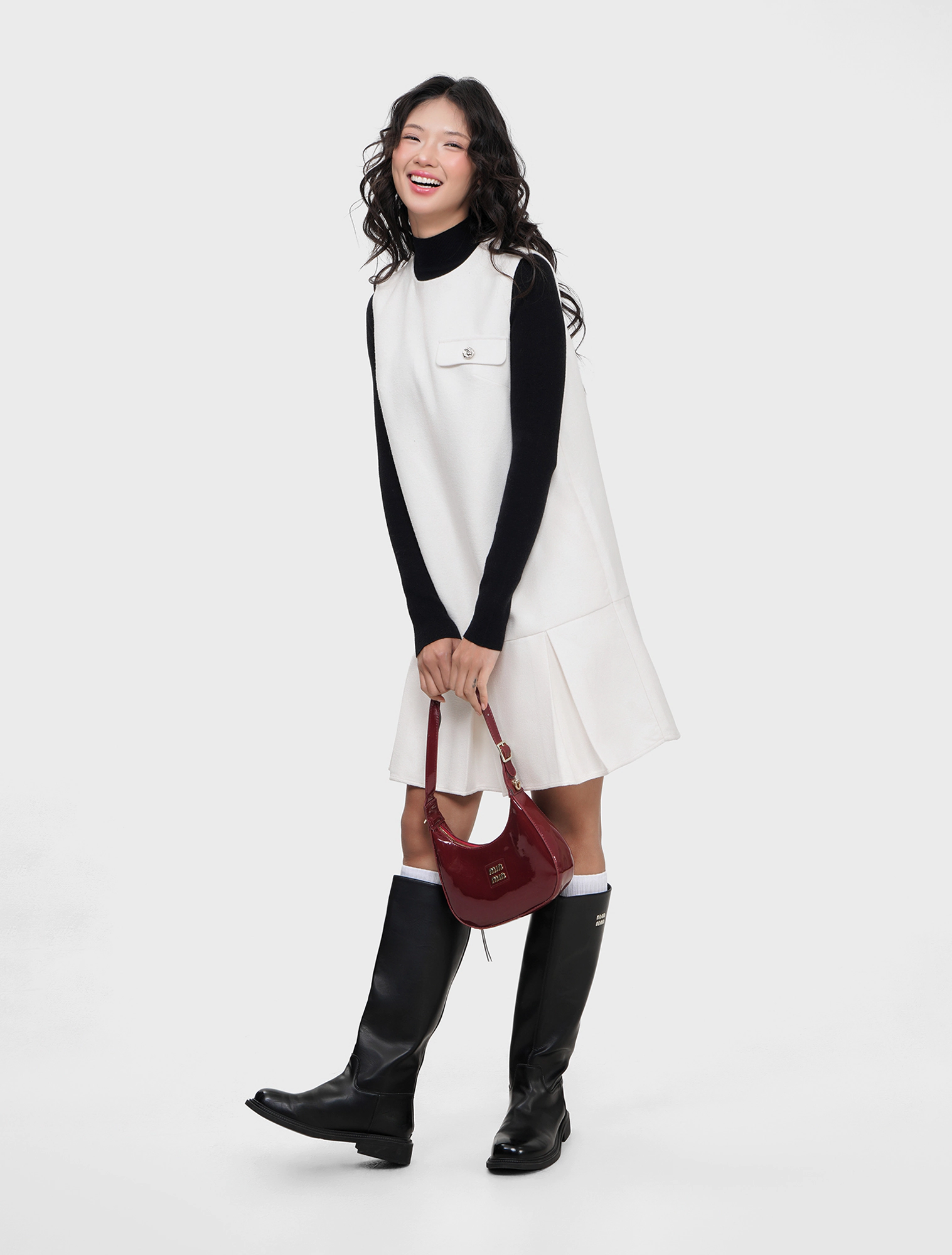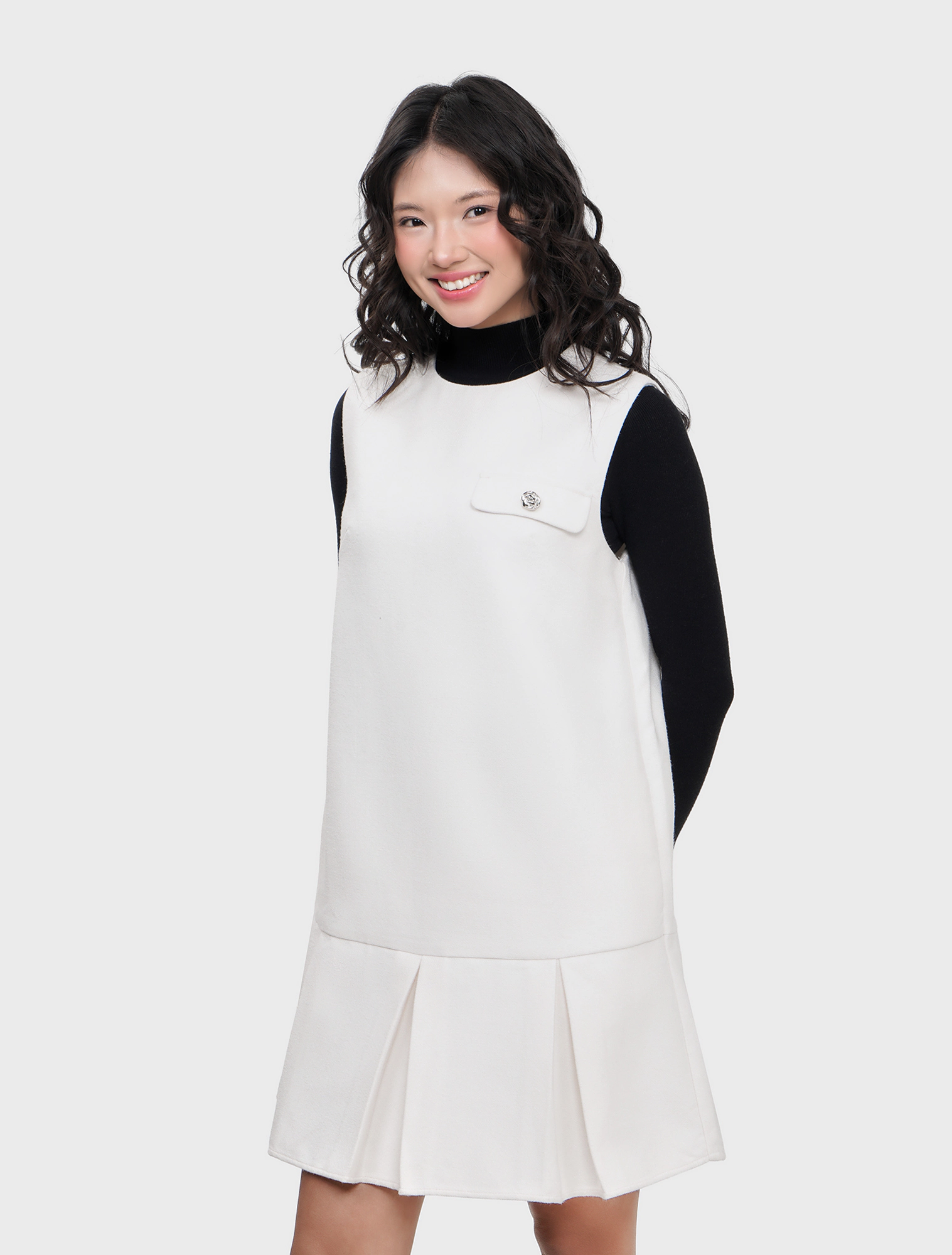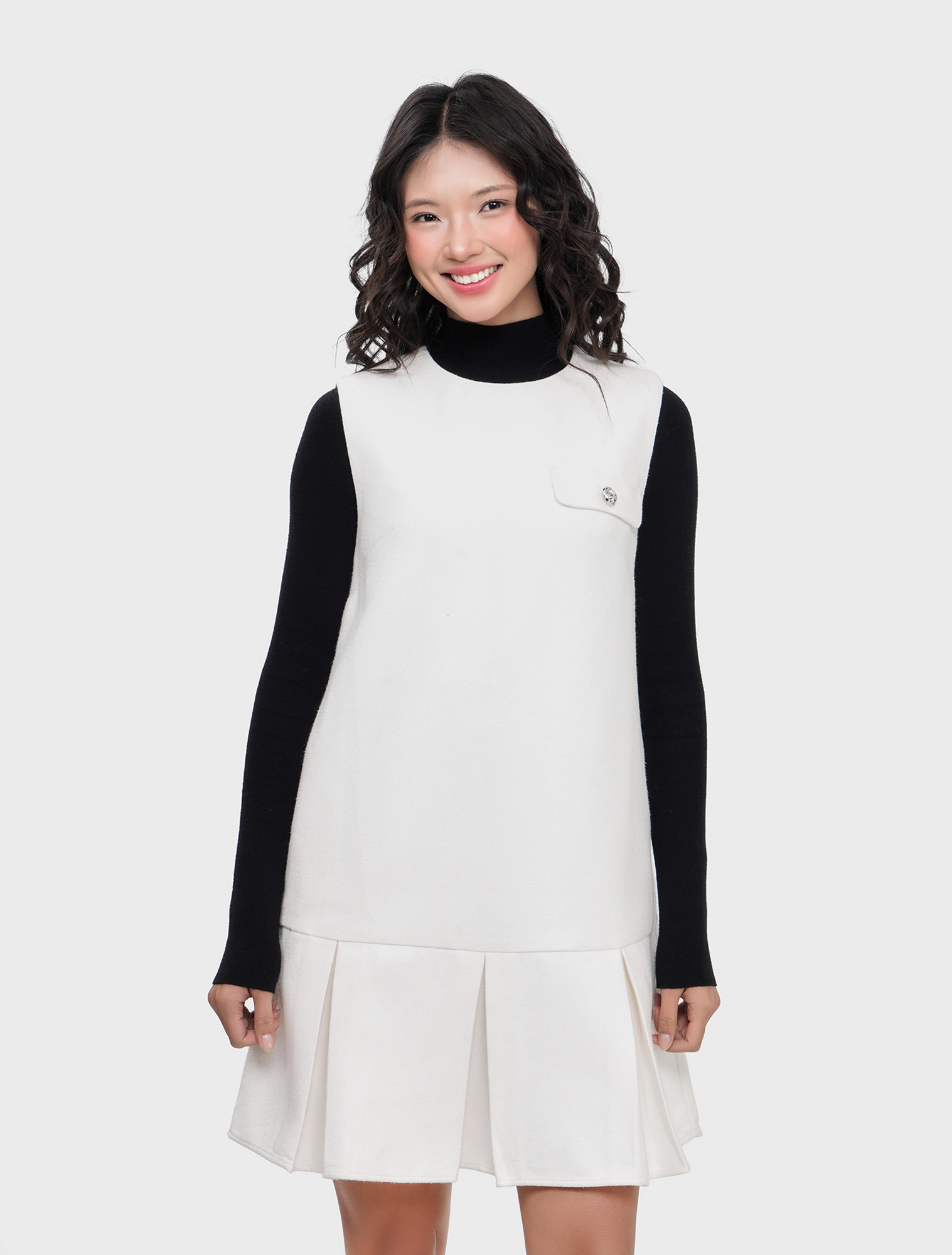 Váy liền nữ sát nách, dáng suông, chất liệu dạ ấm áp. Hoàn cảnh sử dụng linh hoạt công sở, dạo phố, lễ hội.